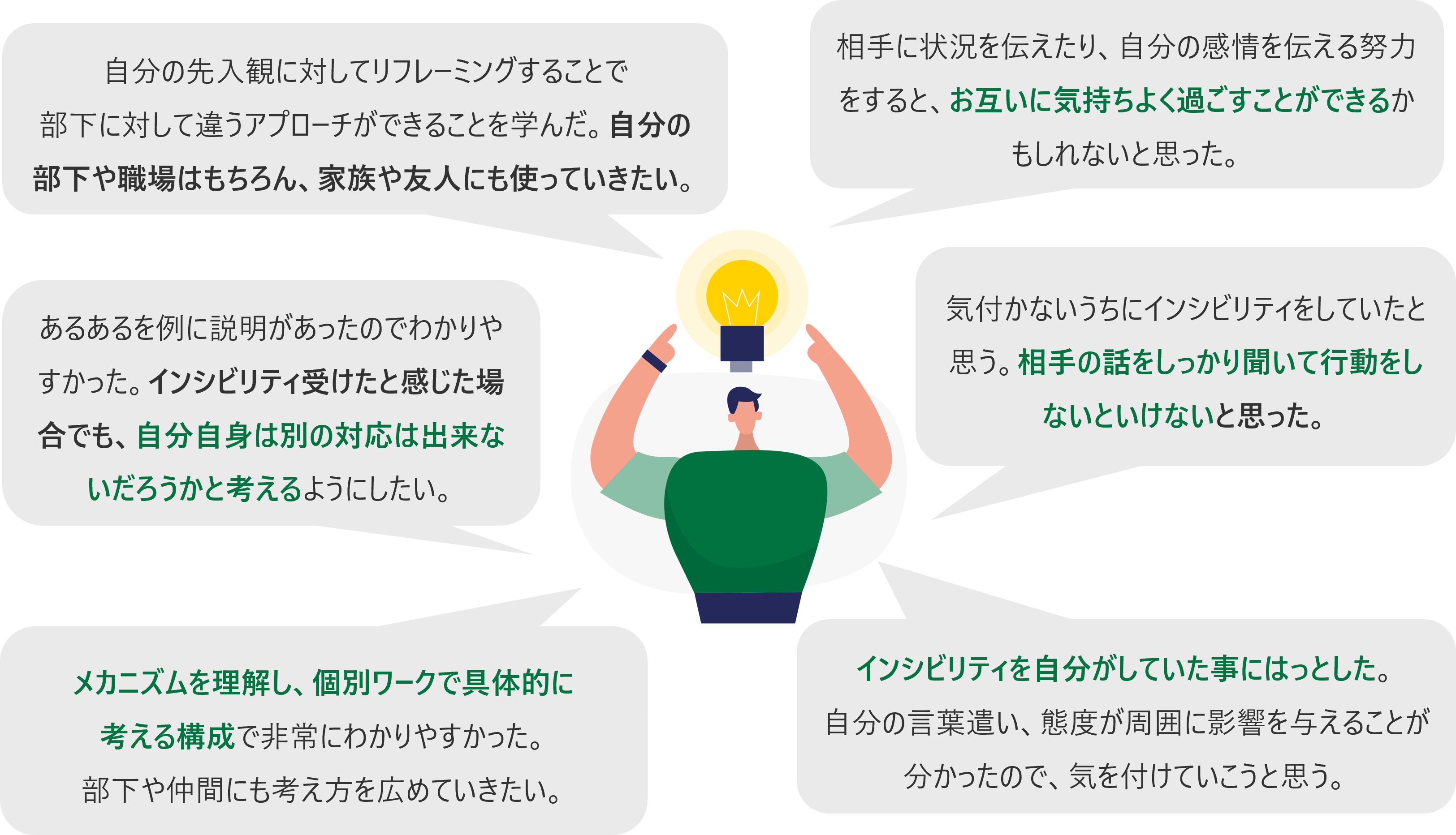 本プログラムは、単に知識を学ぶだけではなく、実践的なロールプレイを通じてインシビリティでない行動パターンを上司層が獲得できることが何よりも特徴です。本プログラムによって、上司層が部下と適切なコミュニケーションを取れるようになり、信頼関係が構築できることで、より生産性が向上する職場が増えることを期待しています。
