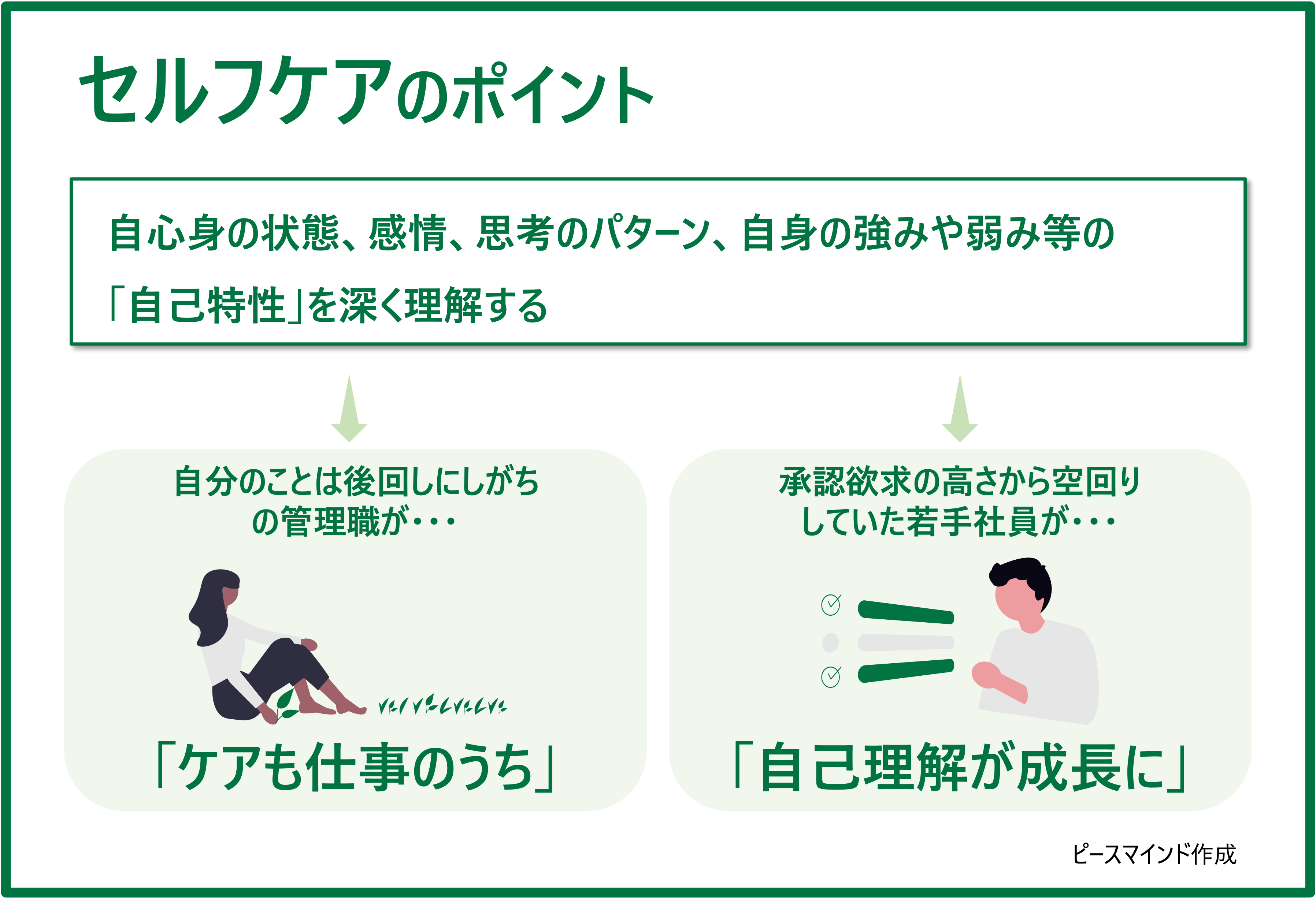 - 「セルフケア」を見直すことで、社員一人ひとりの課題解決力が向上する。