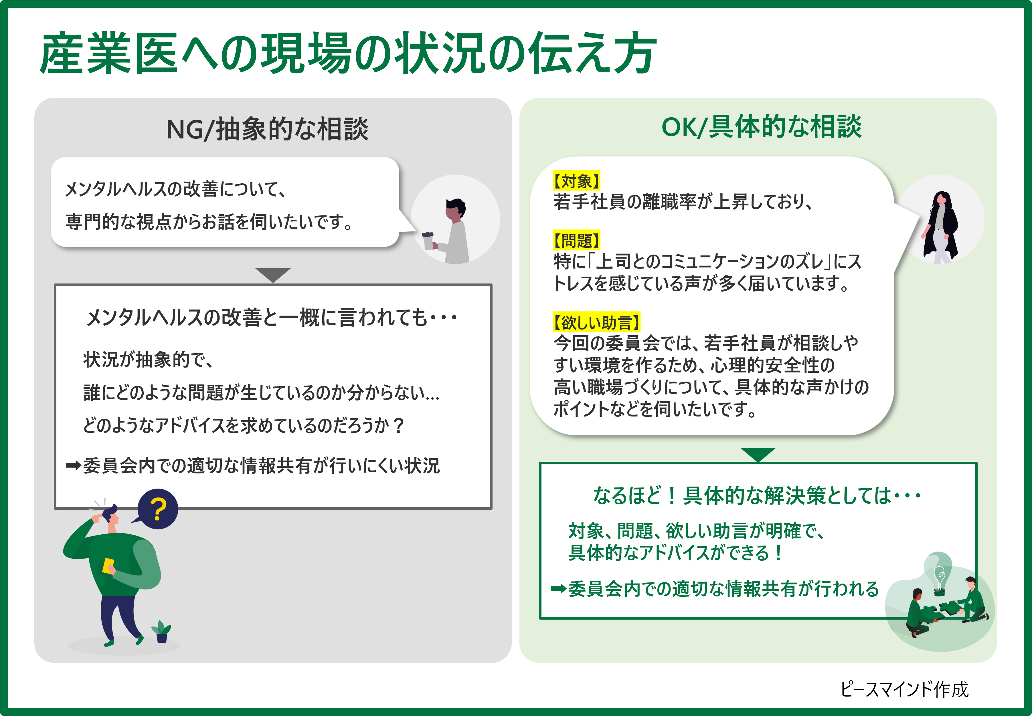 ここでは、産業医に現場の状況を具体的に伝える方法を例を用いて解説します。